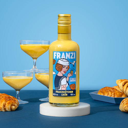 Ein Sahnelikör, der noch richtig viel Sahne und besondere Geschmacksnoten aus Zimt, karamellisiertem Zucker, Vanille und weiteren schmackhaften Zutaten enthält – genau das bietet dir unser Franzi Franzbrötchenlikör. Mit seiner samtig-weichen Textur und einem fein abgestimmten Geschmack lässt er sich auf vielfältige Art und Weise genießen – egal ob zur Eiscreme, in Kombination mit Eierlikör als cremiger Getränke-Genuss oder natürlich ganz einfach pur. In unserem Online Shop kannst du zwischen einer klassischen 0,5 l Flasche oder unserer praktischen Mini-Box entscheiden, die sich ideal für jede Party, zum Teilen oder ganz einfach für einen leckeren Schluck zwischendurch oder unterwegs eignet.