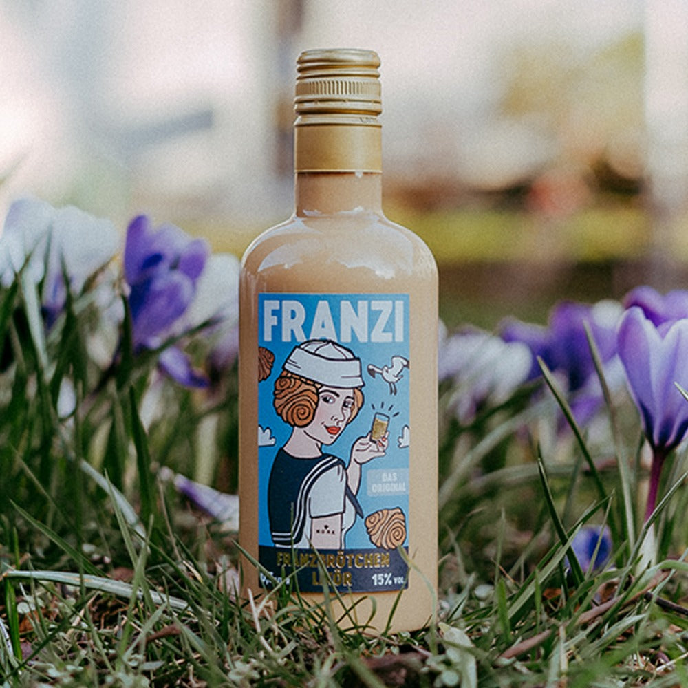 Ein Sahnelikör, der noch richtig viel Sahne und besondere Geschmacksnoten aus Zimt, karamellisiertem Zucker, Vanille und weiteren schmackhaften Zutaten enthält – genau das bietet dir unser Franzi Franzbrötchenlikör. Mit seiner samtig-weichen Textur und einem fein abgestimmten Geschmack lässt er sich auf vielfältige Art und Weise genießen – egal ob zur Eiscreme, in Kombination mit Eierlikör als cremiger Getränke-Genuss oder natürlich ganz einfach pur. In unserem Online Shop kannst du zwischen einer klassischen 0,5 l Flasche oder unserer praktischen Mini-Box entscheiden, die sich ideal für jede Party, zum Teilen oder ganz einfach für einen leckeren Schluck zwischendurch oder unterwegs eignet.